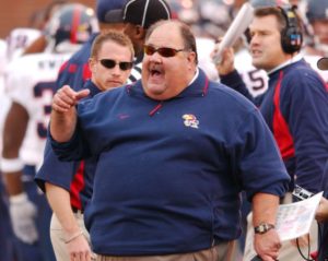 Raimond Pendleton returned a punt 77 yards for a touchdown but he gets an unsportsmanlike conduct penalty for an innocent jump into the endzone. Mangino waddles down the field to belittle the kid. The incident made national headlines although it wasn’t some huge scandal. In a vacuum, this doesn’t seem so bad, but the coach had a habit of yelling at people as we will get to shortly.