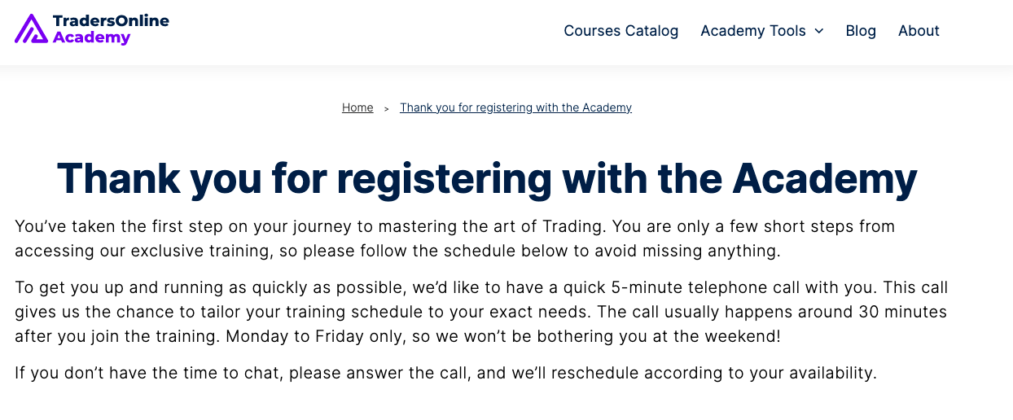 What happens if you sign up? You end up getting redirected to something different entirely. In some cases, you go to a training or education academy website. Other sites take you to a trading platform. Either way, your email and phone number are now in the hands of scammers who will constantly bother you to buy their junk or deposit money.
