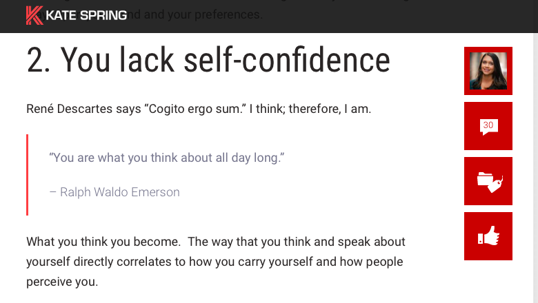 Beyond that, everything else this so-called attraction expert puts out there exposes her as a recent college graduate who isn’t qualified to be giving advice to anyone about anything. But don’t take my word for it. Here is Spring dropping a Descartes reference in one of her blog posts: