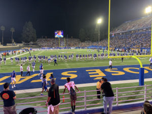 The best way to describe how chill Spartan Stadium is their approach to the Mountain West Conference championship trophy. They literally just put it out behind one of the endzones and let people take a picture with it. There was a lone security guard kind of watching the proceedings.