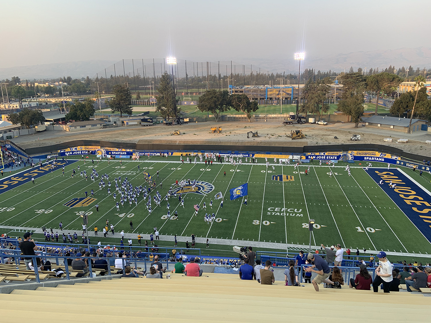Before we jump into our Spartan Stadium (CEFCU Stadium) review, it’s important to point out the venue is undergoing a massive redevelopment. This is impossible to miss if you’ve watched a San Jose State home game recently. The side facing the hard cam is a dirt patch with strategically placed construction equipment scattered across it.