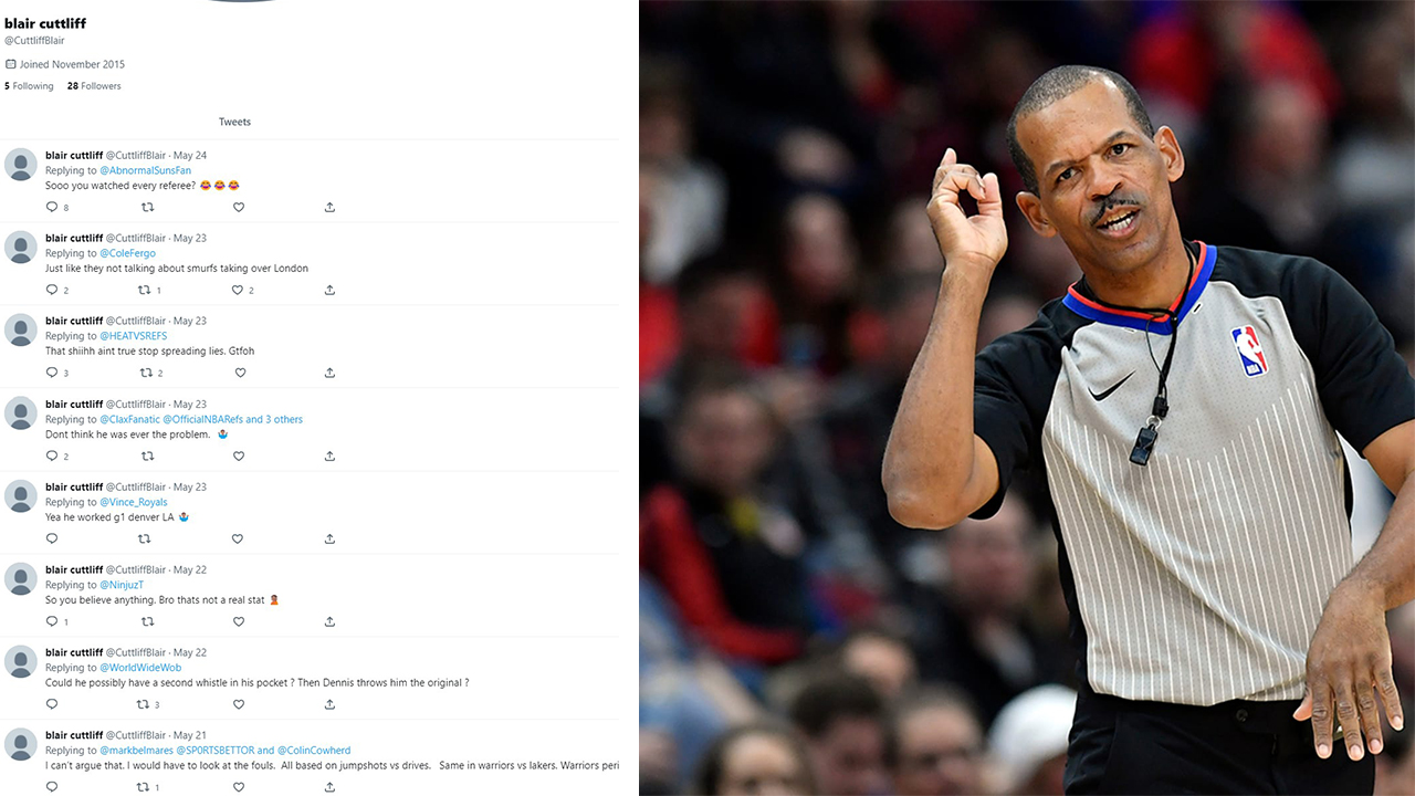 The NBA can’t get enough of Twitter burner accounts. Players and general managers have gotten in on the act. And now a referee has gotten in on the act. Official Eric Lewis was busted for sending Tweets under the handle @CuttliffBlair and is currently under investigation. As for why he or others in basketball do this, well, no one really knows.
